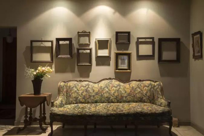 This wall displays a series from my collection. When I’m abroad, I would check out antique shops and antique picture frames always draw most of my attention. This wall presents my collection of antique picture frames.