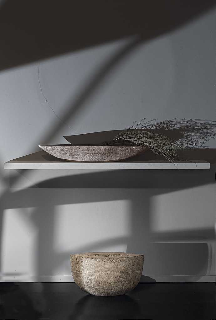 Gao Zhenyu’s shadow celadon harmoniously unifies the three aspects of ceramics – modelling, decoration and glaze – creating a perfect work of art. The shadow celadon tripod plate bears the colour of green hills after the rain, underneath of which the fluidity of life flows.