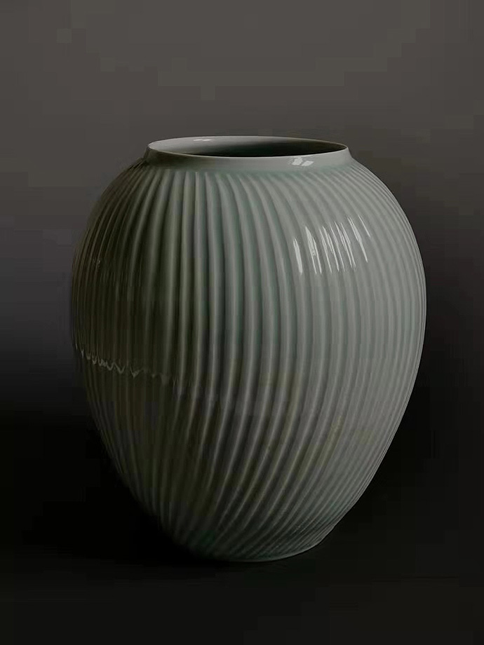 The glaze colour of the celadon porcelain is clear and shiny, green and tender, full of youthful vitality. It feels appropriate to describe Gao Zhenyu’s shadow celadon glaze by echoing ‘Bie Fu’ written by the great poet Jiang Yan of the Six Dynasties era: ‘Spring grass is blue; spring water is green.’